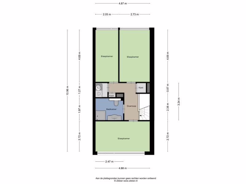De begane grond biedt toegang tot de eigen berging en twee parkeerplaatsen in de afgesloten parkeergarage. Op de eerste etage bevinden zich de woonkamer, keuken, toilet en de trap naar de tweede etage. Hier vindt u drie slaapkamers en een nette, geheel betegelde badkamer.