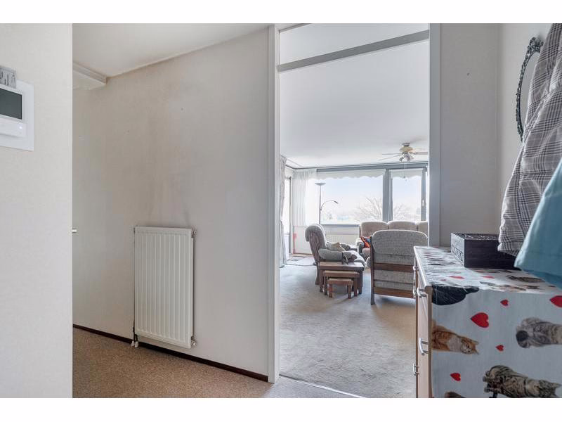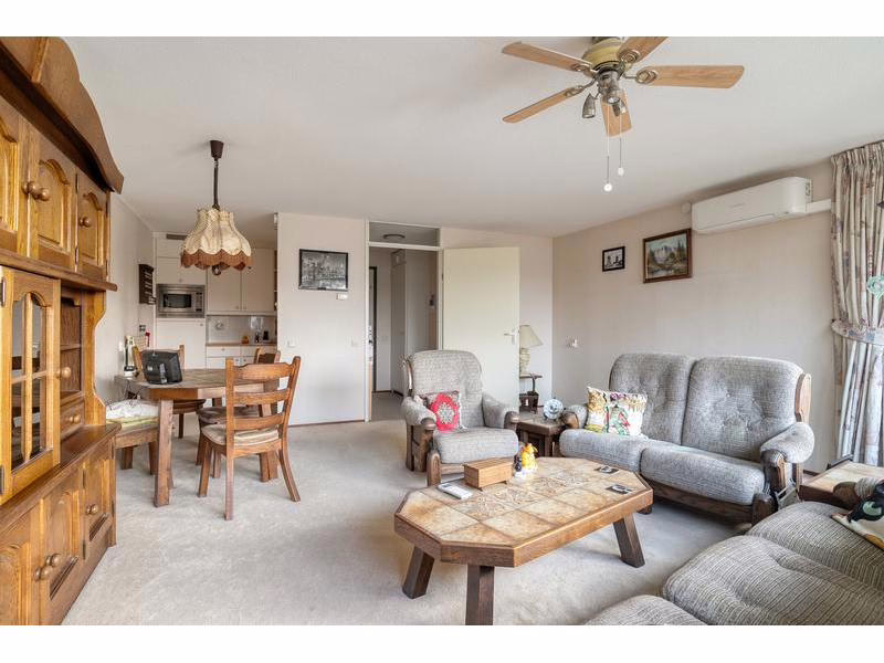 De begane grond heeft een afgesloten entree met lift en toegang tot een inpandige berging met elektra. Op de tweede verdieping vind je de entree met meterkast en videofoon, met toegang tot alle vertrekken. Naast het separate toilet bevindt zich een praktische bergruimte. De ruime badkamer is compleet met ligbad, douchecabine en wastafelmeubel. De lichte woonkamer van circa 30 m² met open keuken biedt toegang tot het zonnige balkon op het westen. Beide slaapkamers zijn comfortabel en voorzien van airconditioning.