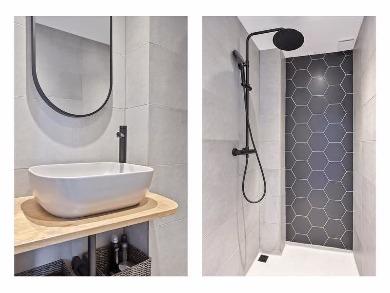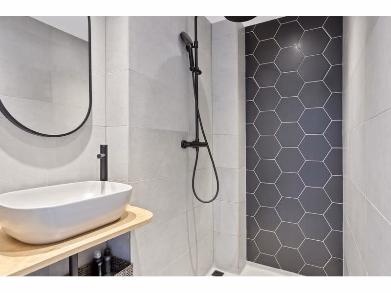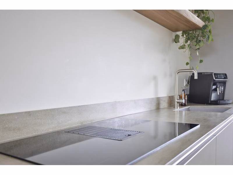 Op de tweede verdieping vind je een ruime hal die toegang biedt tot alle vertrekken. De indeling omvat een modern separaat toilet, een totale van twee slaapkamers en een doorzonwoonkamer met een praktische keuken. De badkamer is geheel betegeld en uitgerust met een inloopdouche en wastafelmeubel.
