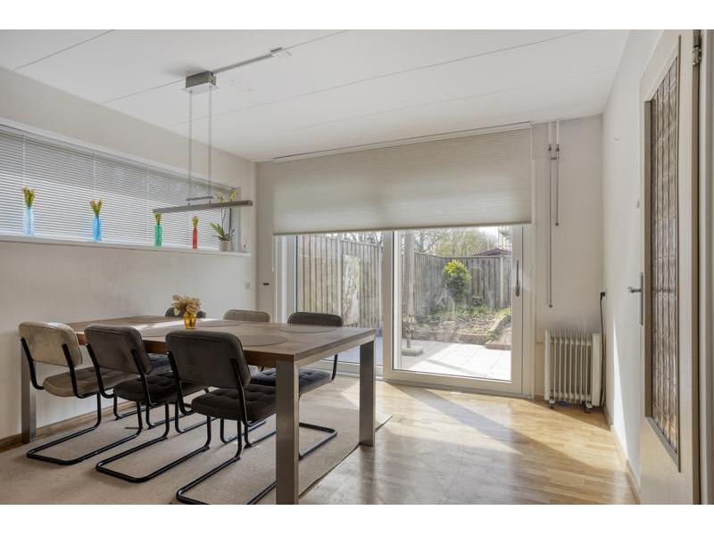 Deze gezinswoning biedt comfortabele leefruimtes met een Z-vormige woonkamer, parketvloer en een kunststof schuifpui naar de tuin. De gesloten keuken is compleet uitgerust (gaskookplaat, afzuigkap, koel-vriescombinatie, combimagnetron en vaatwasser). Verder vijf slaapkamers verdeeld over twee verdiepingen, een volledig betegelde badkamer met ligbad en douchescherm, en een separate toiletruimte. Praktische verbeteringen omvatten kunststof kozijnen (dec. 2025), deels triple glas, dak-/muur-/vloerisolatie, 9 zonnepanelen (2023), en een cv-installatie met mechanische ventilatie.
