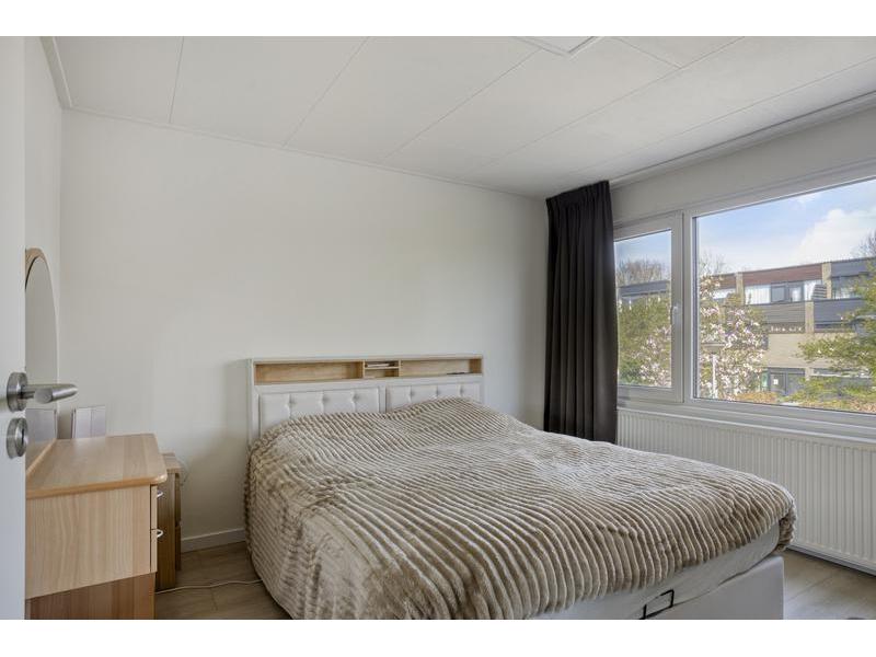 Begane grond: hal met toilet (fonteintje, muurverwarming), meterkast en trapopgang; royale Z-vormige woonkamer met parket en grote raampartijen; gesloten keuken aan de achterzijde en toegang via de schuifpui naar de tuin. Eerste verdieping: vier slaapkamers, volledig betegelde badkamer met ligbad en douchescherm, en een separate toiletruimte op de overloop. Tweede verdieping: ruime, lichte voorzolder met twee dakramen en dakkapel, bergruimte en aansluitingen voor wasmachine en droger, cv-ketel en ventilatie-unit; daarnaast een volwaardige vijfde slaapkamer met dakkapel.